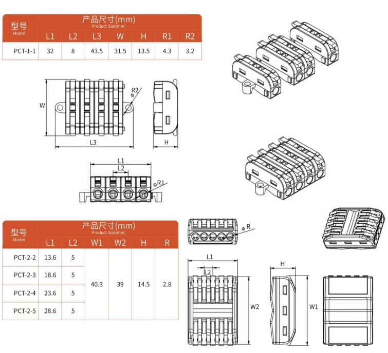 Cút Nối Dây Điện PCT-2-2, PCT-2-3, PCT2-5, PCT-42, PCT-62, đầu nối nhanh dây điện PCT 32A 250V/4KV, Cút Nối Dây Điện Nhanh PCT