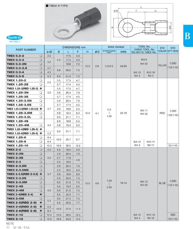 Đầu cốt tròn bọc nhựa NICHIFU TMEX0.3/TMEX1.25/TMEX2-2/3/3.5/4/5/6/8