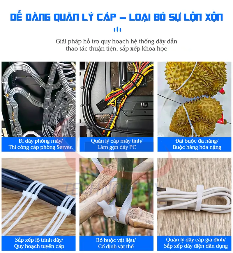 Dây thít nhựa giúp cố định, bó gọn và sắp xếp dây cáp một cách nhanh chóng, gọn gàng và an toàn.