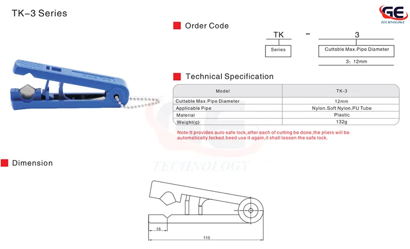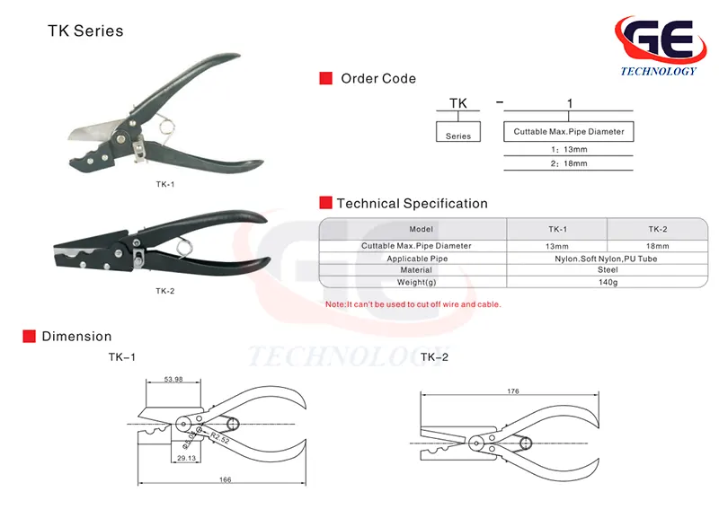 Kéo cắt ống dây khí TK-1, TK-2, TK-3 là bộ sản phẩm chất lượng cao đến từ hãng SNS (Trung Quốc), chuyên dùng để cắt các loại ống khí nén như Nylon, Polyurethane (PU) và các loại ống nhựa mềm khác. Với thiết kế tiện dụng và độ bền cao, sản phẩm này là lựa chọn lý tưởng cho các kỹ thuật viên và nhà máy công nghiệp.