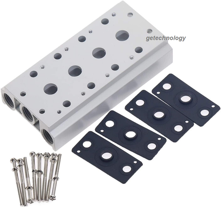 Đế van AIRTAC Model 100M-4F ( loại đế lắp được 4 van 5/2 hoặc 5/3 ren 9,6mm)